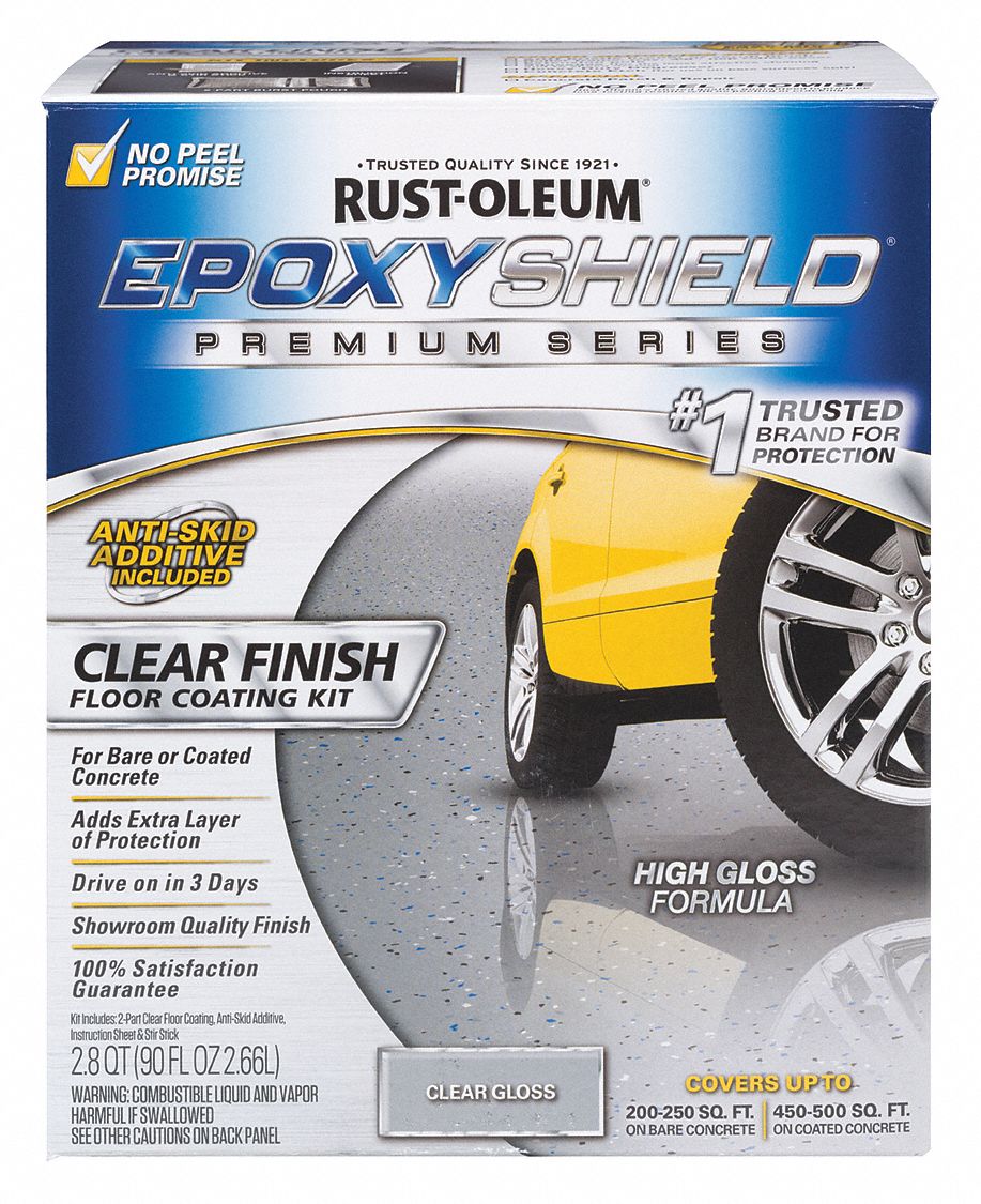 Rust oleum epoxyshield premium garage floor coating adds a high gloss protective finish to coated or bare concrete surfaces for use in the most demanding enviro.